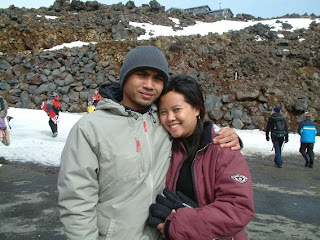 We got to Whakapapa Village (at the bottom of the skifield) around 10.45am and there was a sign saying that the road up to the mountain is closed as there was no parking space left! Man, we were not happy! We had to queue for a good 45 minutes at least to get to the ticket booth to get tickets for the shuttle to take us up the mountain. Poor Jay and Fahmi had to carry their boards all the way from the car to the ticket booth... and after we got our tickets, there was about another hour's wait for shuttles. The line was crazy long! So we entertained ourselves taking photos and such.. but you can take only so many photos when you're tired of waiting and just want to get up the mountains.